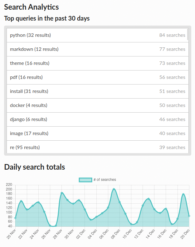 Search analytics demo. Read more in Search analytics.